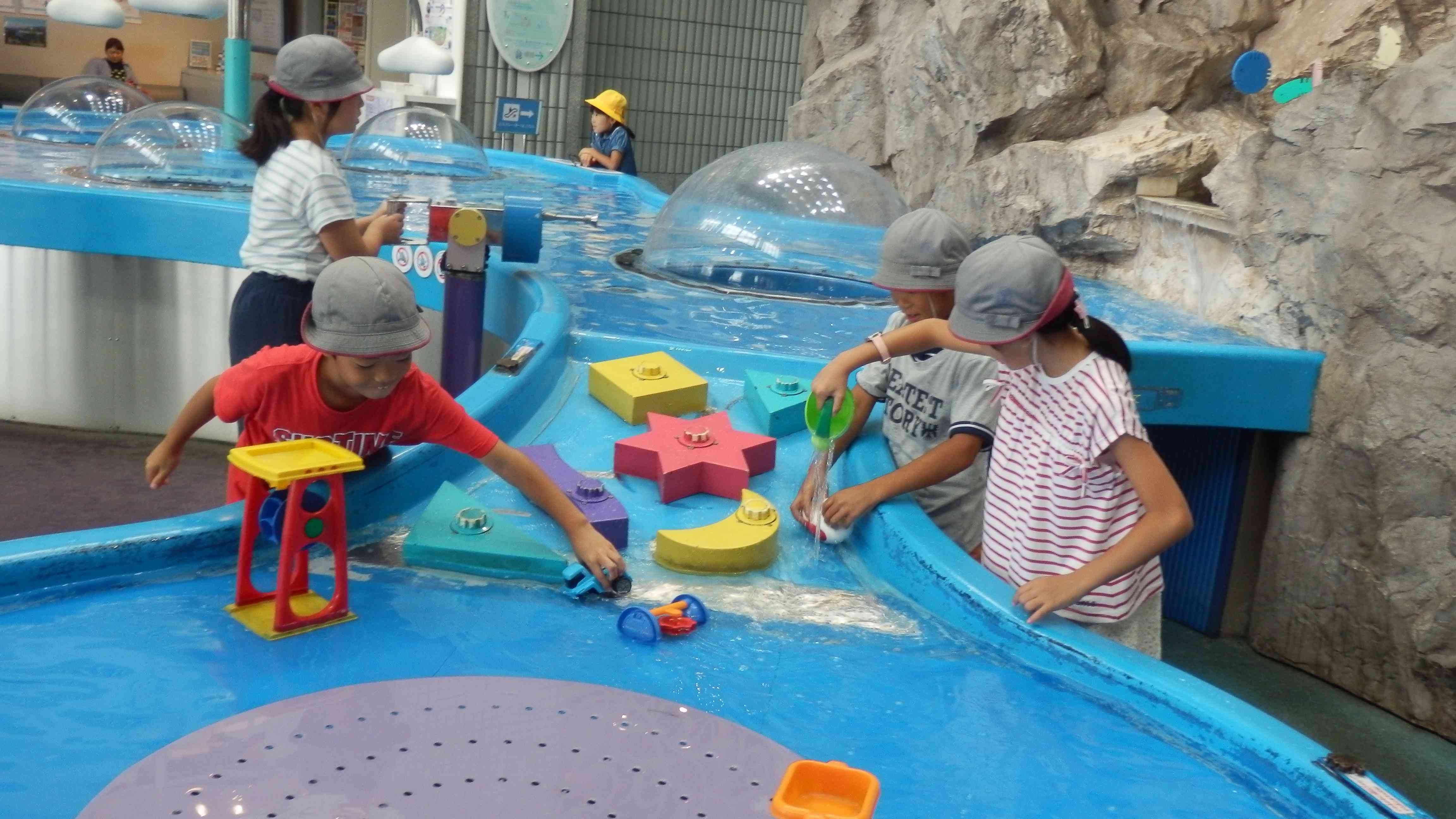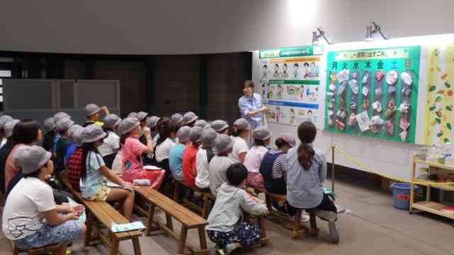 9月14日(金) 今日は4年生が社会科見学にいきました。最初に水の科学館に行きました。すでに出前授業で上水道や下水道の勉強はしてきたので、そのまとめとしての水道の学習です。ガイドツアーやシアターの見学、アトラクションのコーナーなどで十分に体験しました。雨も上がり外でお昼を食べた後、午後は中央防波堤廃棄物処分場に行きました。初めに館内で説明を聞いた後、バスに乗りこみ広大な処分場の中を見学して回りました。見晴らし台では「ごみ~~ へらすぞ~~~」と大声で叫びました。実際に見て感じる学習ができました。【添付ファイル】