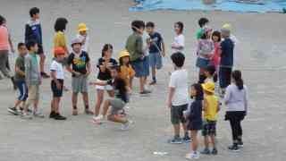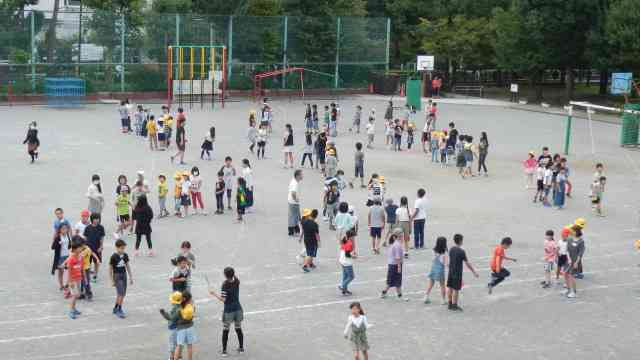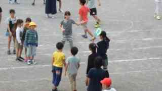 10月3日(水) 今日の児童集会は、校庭で、わんぱく班で長縄をやりました。高学年が回し手になって、上手に低学年の子を跳ばせてやる姿が見られました。