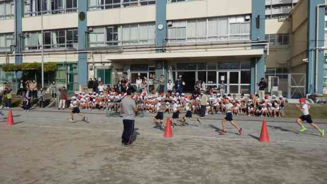 11月28日(火) 今日は、持久走記録会がありました。2校時は3,4年生、3校時は1,2年生、4校時は5,6年生が走りました。1,2年生は600m、3,4年生は800m、5,6年生は1000mです。天気もちょうど良く、保護者の方も多数応援に来てくださいました。「頑張れ-!頑張れ-!」の熱い声援を浴びながら、一生懸命に走るこどもたち。どの子も真剣に目標に向けて走りました。自分自身のいい記録が出せて嬉しかった子も多くいました。【添付ファイル】