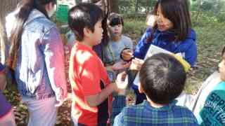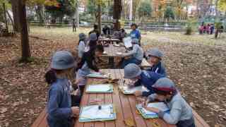 11月30日(金) 今日はみどりの授業、秋の勉強です。1年生から4年生まで、樹木を見上げたり,落ち葉を拾ったりして、触ったりにおいをかいだり色を比べたり・・・体感を通して森の秋を楽しみました。
