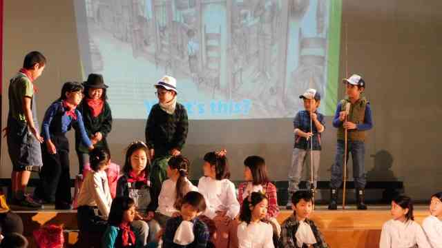 12月7日(金)8日(土) 2日間に渡り、かめたか学芸会を開催しました。7日は児童鑑賞日でした。本番の1日目ですが、こどもたちは伸び伸び楽しそうに演技をしていました。 3年生は「OUT of the WOODS ~森のおくから~」です。100年前ほどの昔のカナダあった実話で、英語の学習を生かし、台詞も英語を交えた劇でした。ラストの英語の歌も発音翌きれいに歌っていました。 1年生は「おかしのすきなかいぞくの おかしな おかしな おかしなたび」です。学芸会では定番の劇です。初めての学芸会、口を大きく開けて大きい声で台詞を言って、一生懸命演じました。 5年生は「オズの魔法使い」。何度も物語を読んで自分たちなりにイメージを作って演じました。ミュージカルなので途中歌のソロも頑張りました。 (つづく)【添付ファイル】