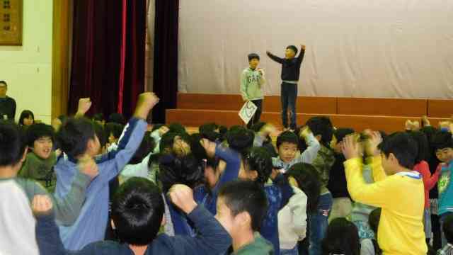 12月12日(水9 今日の児童集会は、ハイ アンド ロー クイズでした。 1 ランドセルの重さは 1kgより重いか軽いか 2 教室の広さは 52平方mより広いか狭いか 3 校長先生の身長は 185cmより高いか低いか 低学年には単位の大きさがわからないと思いますが、とりあえず正解なら喜んでいました。 正解は 1 ハイ(1.1kg) 2 ハイ(54平方m) 3 ロー(180cm)