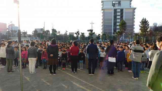 1月8日(火) 冬休みが終わり、今日から授業がスタートしました。また、学校でこどもたちの元気な姿が見られるようになりました。全校朝会では、平成最後の新年のあいさつです。今年も新しい気持ちで頑張っていきましょう。