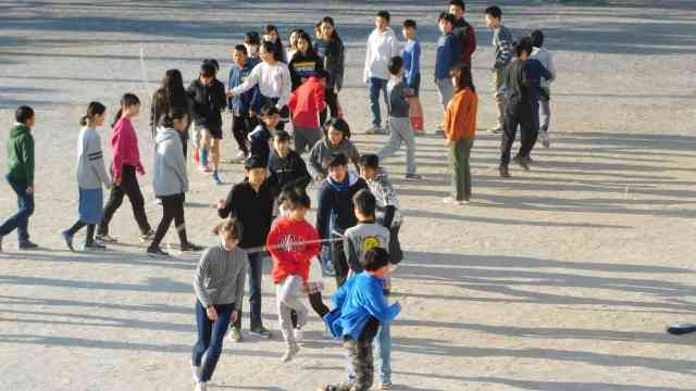 1月17日(木) 今日のわんぱくタイムは、おとといも行いましたが、各学級でながなわチャレンジに向けての記録会です。まず、それぞれウォーミングアップした後、3分間の8の字跳びの記録を録りました。各クラス息も合ってきて、記録も伸びてきたようです。寒さに負けずこれからも練習していきます。