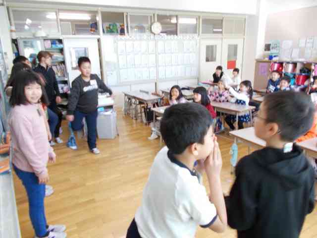1月24日(木) 今日の給食は、わんぱく班給食でした。わんぱく班で集まって給食を楽しく食べた後は、わんぱく班で室内遊びをしました。高学年が下級生の面倒を見ながら楽しく遊びました。