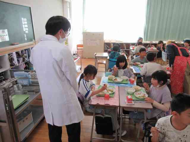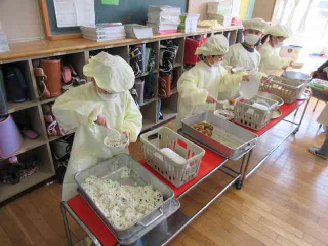 今日から2年生以上の給食が始まりました。 給食当番さんは丁寧に配膳していました。 栄養士の先生と給食のことを話せる機会があるのもありがたいです。 笑顔あふれる給食初日でした。