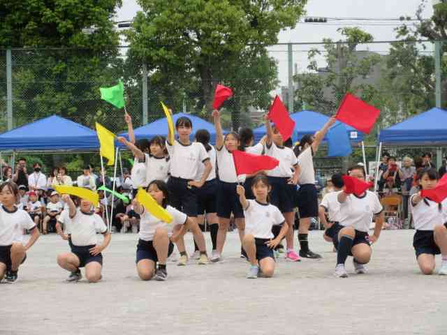 係の仕事をがんばってくれた5年生。 表現では、きれいにそろったフラッグがとてもかっこよかったです。 きびきびとした動きの中でも笑顔があふれ、見ていて感動しました。