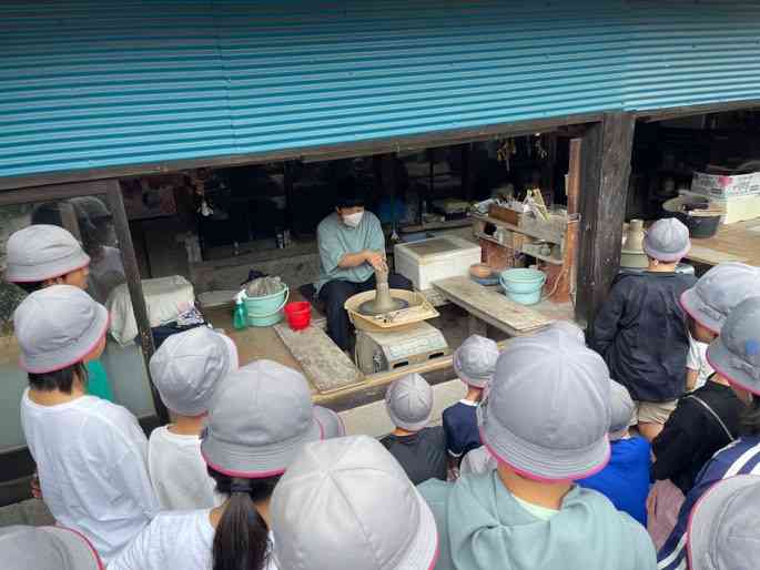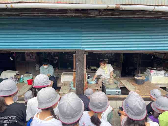 ろくろを回して器を作っている様子や実際に使っている窯を見せていただきました。 たくさん質問をさせてもらえてありがたいです。
