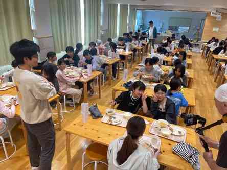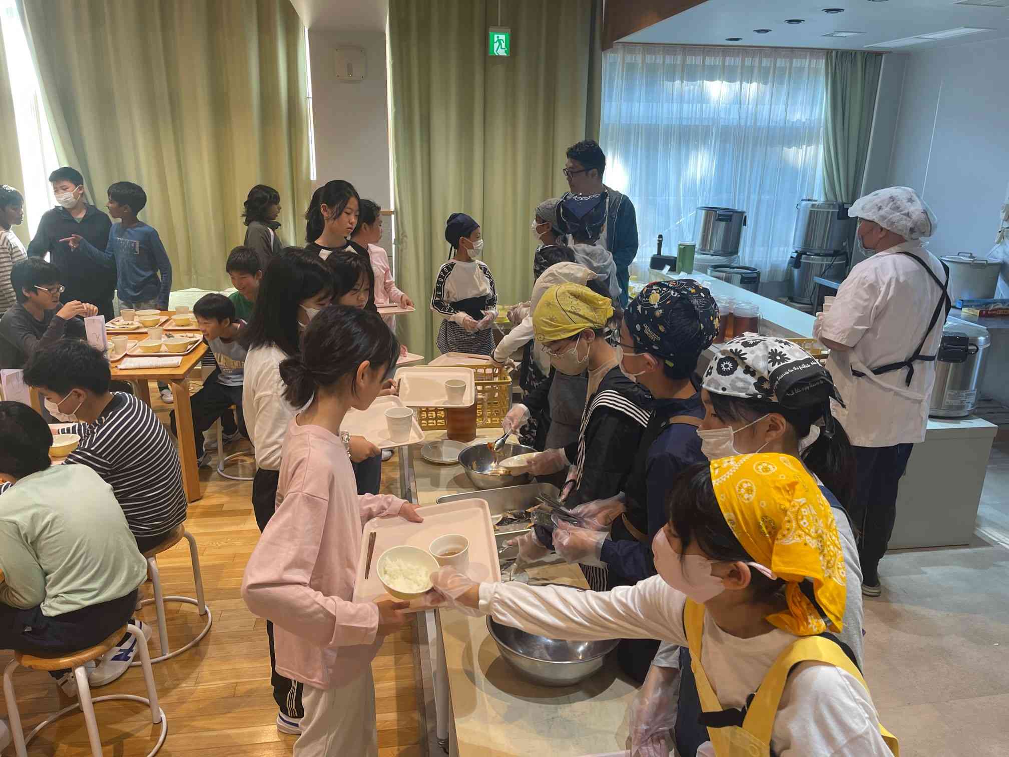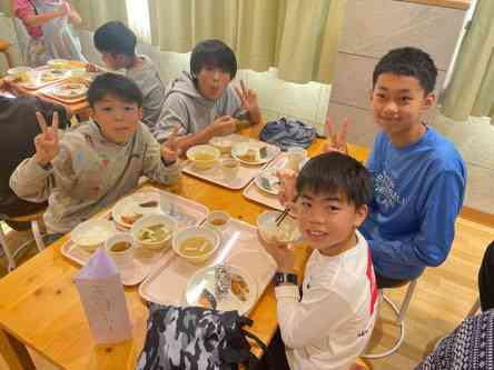 2日目の朝ごはんは和定食です。 マスの塩焼きやきんぴら、味のりをおかずにご飯たくさん食べています。 準備も昨日よりスピーディーでした。
