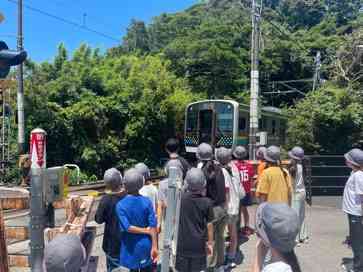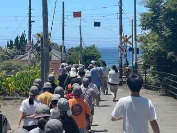 海に近いところに宿泊をするので、有事を想定して高台まで避難訓練をしました。 坂道を上ってきましたが、帰り道は電車とすれ違ったり、開けた景色を見たりして、有意義な時間になりました。