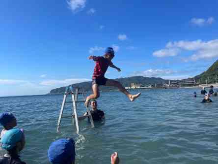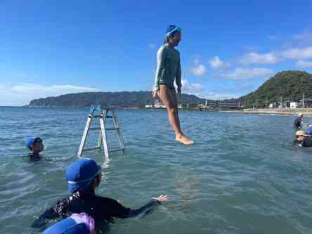 少しだけ浅瀬で楽しむ時間を作りました。 監視台からドボーーン! 「楽しい♪」という声がたくさんあがりました。 少しだけ無茶するのが楽しいですね。