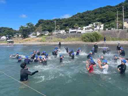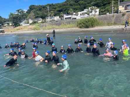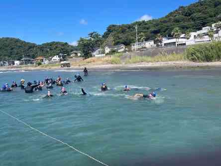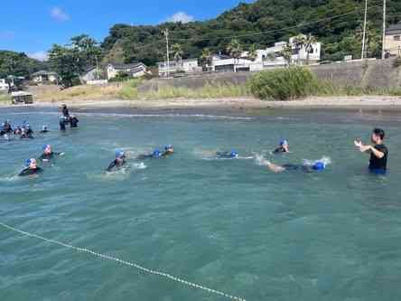 波を感じながら色々な向きで泳ぎました。 「プールより浮く」「真っ直ぐ泳げない」といった声がたくさん聞こえました。