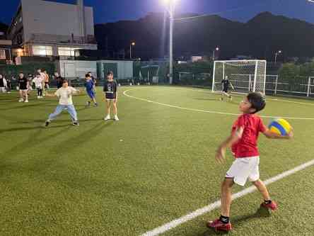 フットサルコートを使ってドッジボールをしました。 メチャクチャ涼しくて最高のコンディションです。 走って投げて動きまくっていました。 広いコートで贅沢なかぎりです。