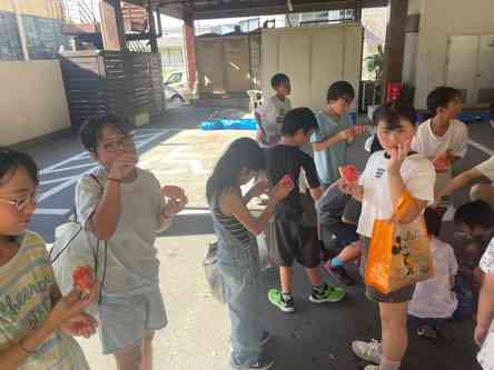 スイカ割りをして、お風呂に入って汗を流して、お楽しみのスイカタイムです。 千葉県産の甘い甘いスイカを食べました。 夏、海、スイカ 千葉で夏を満喫しています。