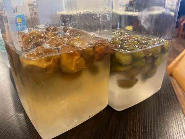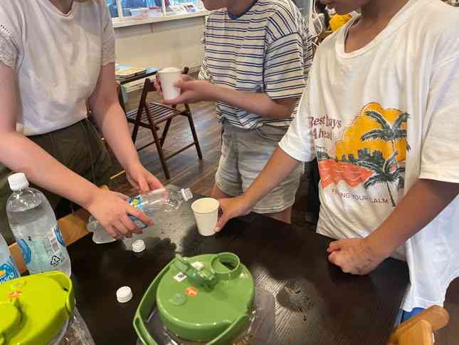 夕食のときに希望者だけ亀高梅ジュースを飲みました。 かなりの大盛況でした。 こどもながらにシュワッとしたものが飲みたいらしいです。 水で割ったジュースも大盛況でした。 「初めて飲んだけど梅ジュース好きになった」「メチャクチャ美味かったです」「来年も飲みたいです」という言葉に感激しました。 亀高小学校産の亀高梅の底力です。