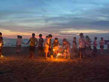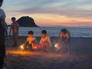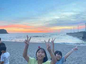 今夜のレクリエーションは花火でした。 何人かの子が「これが一番の楽しみだった」と話をしていました。 ワーワー、キャーキャー言いながらも、線香花火を見ているときは静かになっていました。 夏、海、スイカ、花火 夏の風物詩を満喫しています。 夕暮れの空がとても綺麗な日でした。