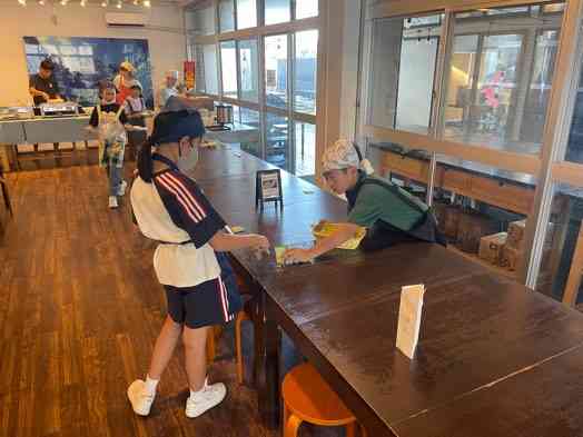 2日目の朝食の準備です。 当番さんたちがよく動いてくれます。 「あと◯個だよ」「こっち無いよ」などしっかり確認してくれています。 朝の体操をして、こどもたちはお腹空いているみたいです。