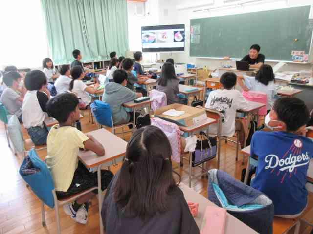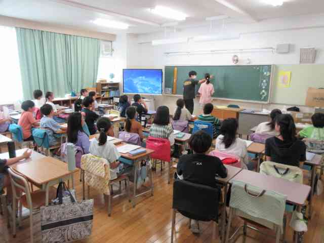 5,6年生の様子です。 先生とコミュニケーションを取っていました。 いい笑顔の子が多く、クラスも活気に溢れていました。 それぞれ夏休みの募る話がありそうなので、そこは時間をかけながら伝えていってもらうようです。