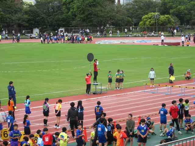 本日、夢の島競技場で6年生の連合運動会がありました。 100m走、50mH、ソフトボール投げ、走り幅跳び、走り高跳び、4×100mリレーが行われました。 小雨の中で開会式が始まり、競技をする頃には雨は止んでいました。 これまでの練習の成果を発揮しようと、他校のこどもたちと競いながら、全力を尽くしました。 納得いく結果が出た子、くやしい思いをした子、楽しんだ子、いろいろな思いはありますが、全員が一生懸命取り組んでいた姿が見られました。 次の学芸会に向けても一生懸命取り組んでくれると信じています。【添付ファイル】