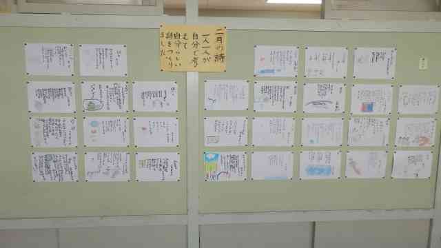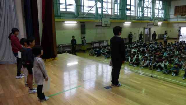 2月26日(月) 今日の全校朝会は、第3回目となる「詩の暗唱コンテスト」の最優秀賞・優秀賞の発表でした。自分で作ったオリジナルの詩を暗唱してその表現力を審査するコンテストです。各クラスで発表し合って選ばれた3名=各学年6名が校長室で最終審査して一番表現力が良かった1名が最優秀賞(他5人は優秀賞)です。今日は、表彰式と最優秀賞者の詩の暗唱でした。みんな上手で素晴らしかったです。選ばれた全員の詩の暗唱は、お昼の放送でも流します。また、全校で取り組んでいますから、全員が自分の詩を作っています。その詩は廊下に掲示してありますので、保護者会の際に、ぜひ、ご覧ください【添付ファイル】