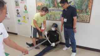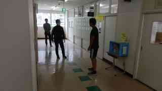 6月12日(火) 今日の9:50分 学校に不審者侵入・・・・という設定での対応訓練及び避難訓練を行いました。今回は教員1名が不審者役になり、実際に廊下をうろうろ歩き回りました。気付いた教員が声をかけて対応したり、警察に通報したり、暴れた不審者を取り押さえたりする実戦訓練もしました。警察に方に一部始終を見ていただいて、アドバイスをいただきました。最後は体育館に集まり、こどもたちへの指導も行いました。【添付ファイル】