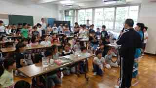 6月20日(水) 今日の1,2校時は4年生が水道キャラバンの出前授業を受けました。6月5日には下水道の出前授業がありましたが、今回は上水道の方です。浄水処理のしくみなども勉強することができました。説明を聞いたりクイズに答えたり、浄水の実験をしたりと、体験学習がばっちりできました。