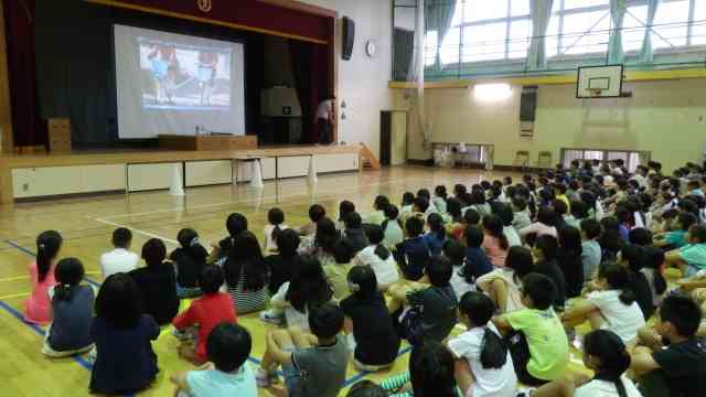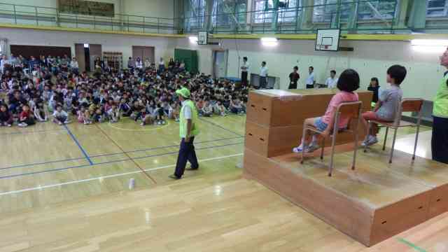6月20日(水) 今日の3校時に全校児童でセーフティ教室を行いました。今回は、トラック協会の方に来ていただいて、交通安全について学びました。交通安全のビデオを見た後、トラックの運転席から見ない場所「死角」について教えていただきました。手を挙げることで、人がいることを気付かせることができると知りました。そのあと、特活室で学校、保護者、警察、関係機関での意見交換会を行いました。