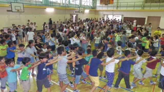 7月11日(水) 今日の児童集会は、集会委員会の企画でゲーム集会でした。ジャンケン列車です。ジャンケンで買った人が先頭になり、負けた人たちがその後につきます。一番最後まで勝ち続けた人が長ーい列の先頭になりまた。
