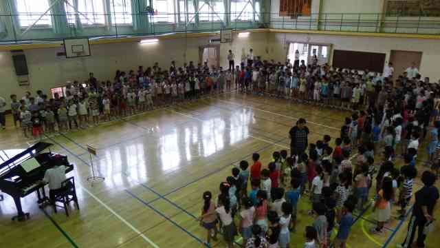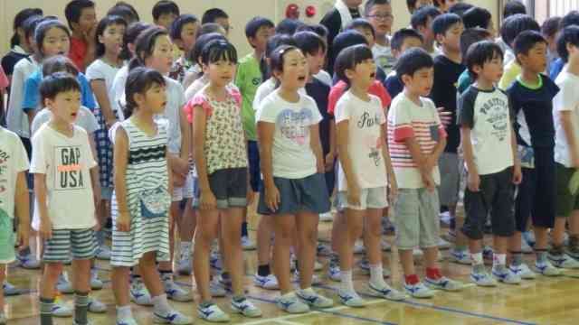 7月18日(水) 今日の音楽朝会は、今月の歌「ほしまつり」を歌いました。「きらりきらきららー♬」と2部合唱で歌うと、七夕の天の川が思い浮びます。素敵な星祭りの歌です。きれいな歌声が体育館に鳴り響きました。